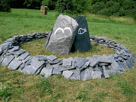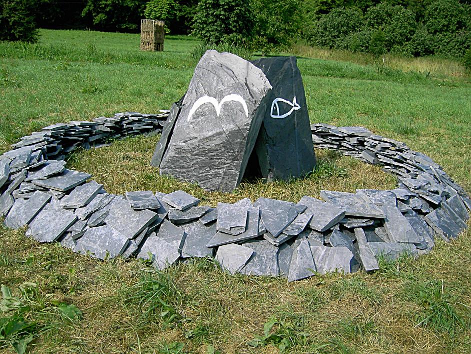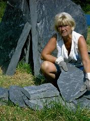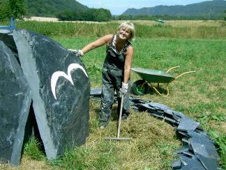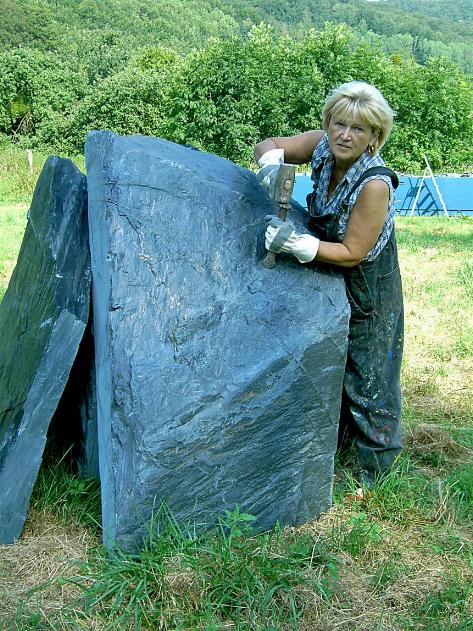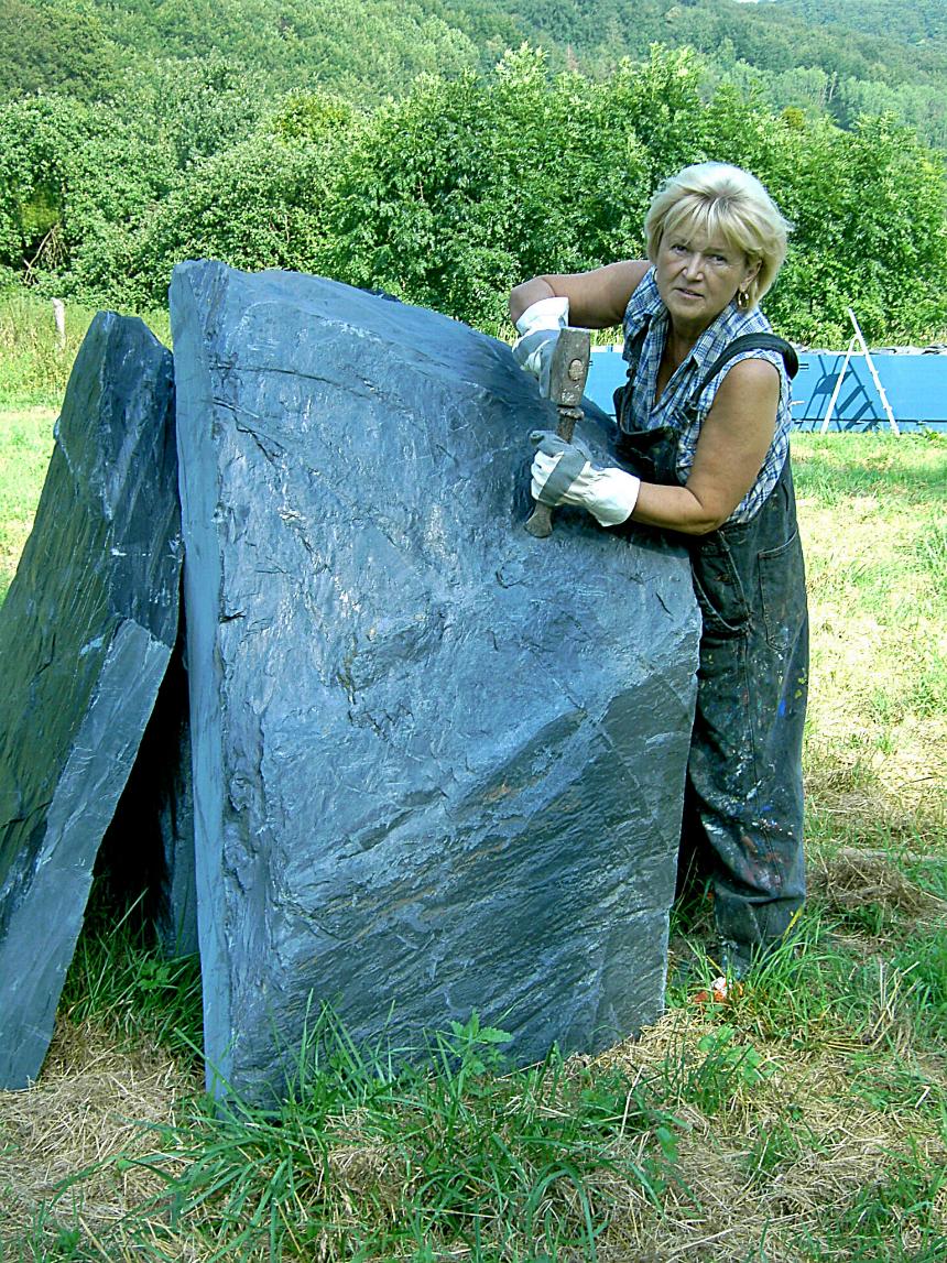 und Erde symbolisieren. Die Künstlerin suchte die Schieferblöcke in der
