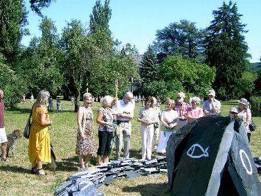 Die Besucher der Dauerkunstausstellung im Park von